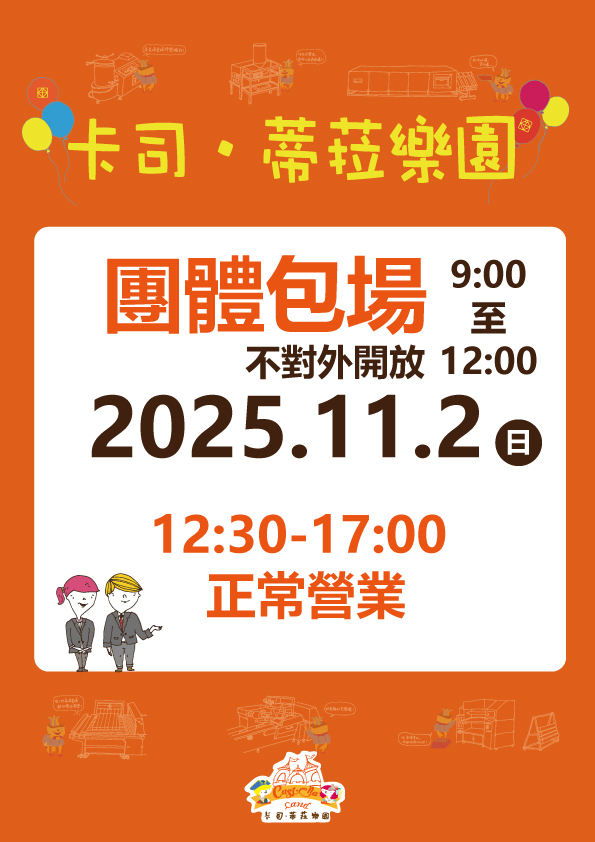 konig01082025-10-29 13:28:402025-10-29 13:28:40【園區公告】2025.11.2 上午9:00-中午12:00團體包場
